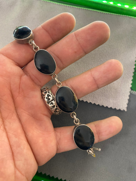 .925 Sterling Silver Large Oval Onyx Bracelet Sz 7.5”
