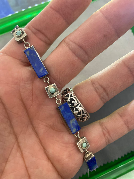 .925 Sterling Silver Lapiz Turquoise Box Bracelet Sz 8”