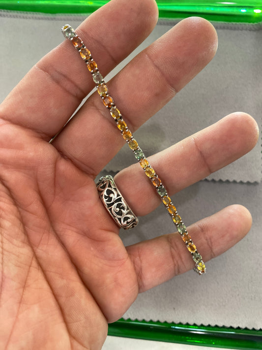 .925 Sterling Silver Multi Gemstone Bracelet 7”