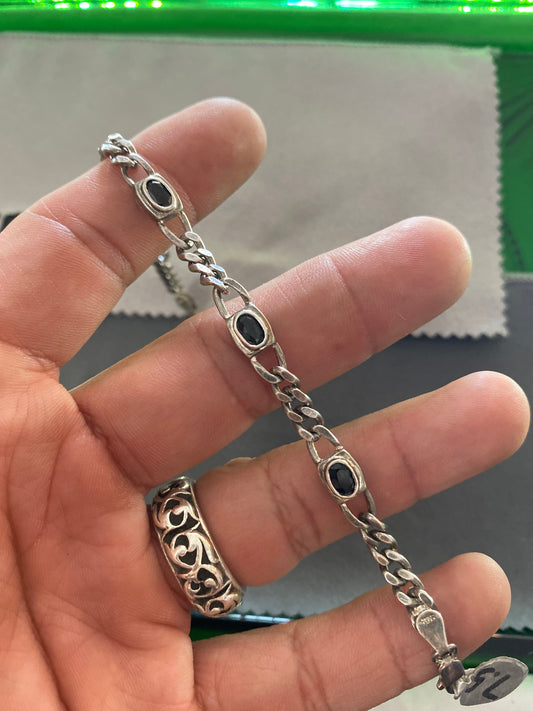 .925 Sterling Silver Onyx Figaro Link Bracelet Sz 7.5”