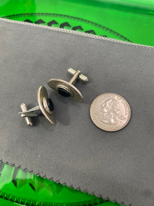 .925 Sterling Silver Onyx Amethyst Gemstone Studded Band Ring Sz 11.5”