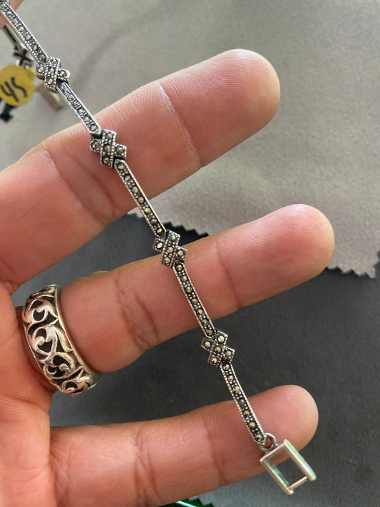 .925 Sterling Silver Onyx Sapphire Bracelet Sz 8”