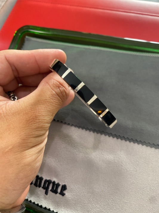 .925 Sterling Silver Onyx heavy Stripe Bracelet Sz 7”