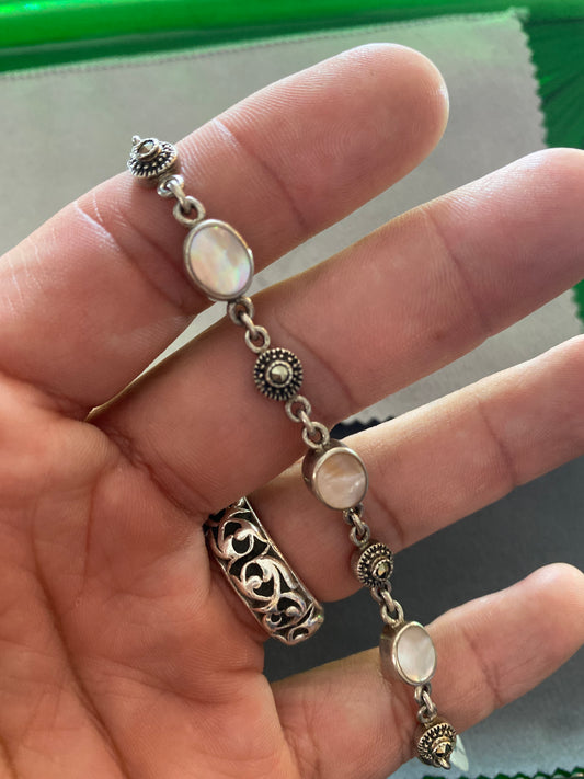 .925 Sterling Silver Pearl onyx Bracelet 7”