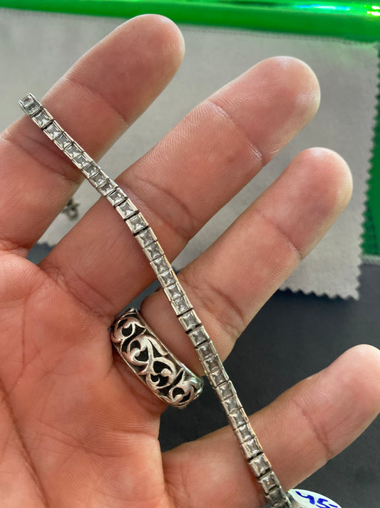 .925 Sterling Silver Quartz Tennis Studded Link Bracelet Sz 7”