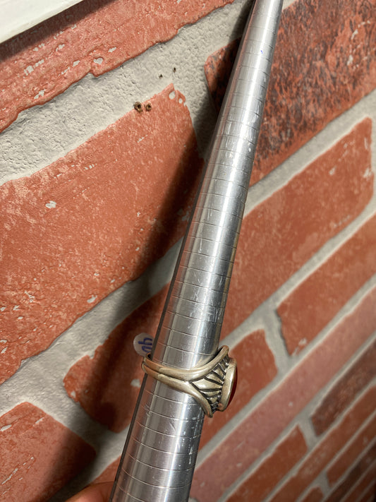 .925 Sterling Silver Red Gemstone Signet Ring Sz 11.5”