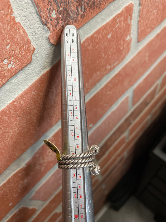 .925 Sterling Silver Rope Wrap Around Bead Ring Sz 8.5”