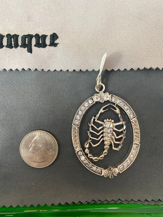 .925 Sterling Silver Scorpio Scorpion Diamond Style Pendant