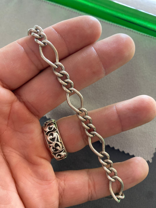 .925 Sterling Silver Gothic Figaro Link Bracelet Sz 7”