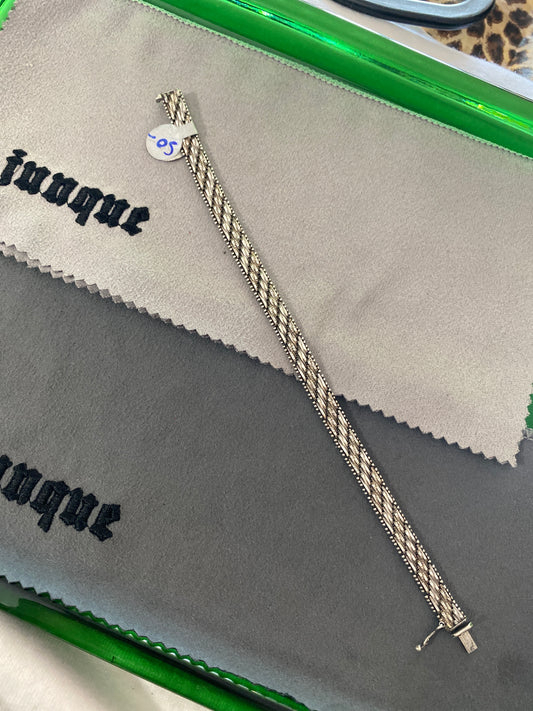 .925 Sterling Silver Flat Textured Bracelet Sz 7.5”