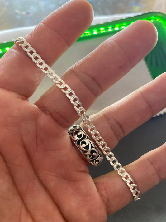 .925 Sterling Silver Flat Small Cuban Link Bracelet Sz 7”