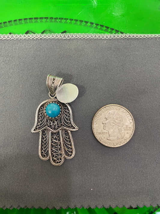 .925 Sterling Silver Hand of Hamsa Pendant
