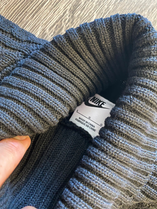 Nike Swoosh Turtle Neck Mock Crewneck Cable Knit Black Sz Large