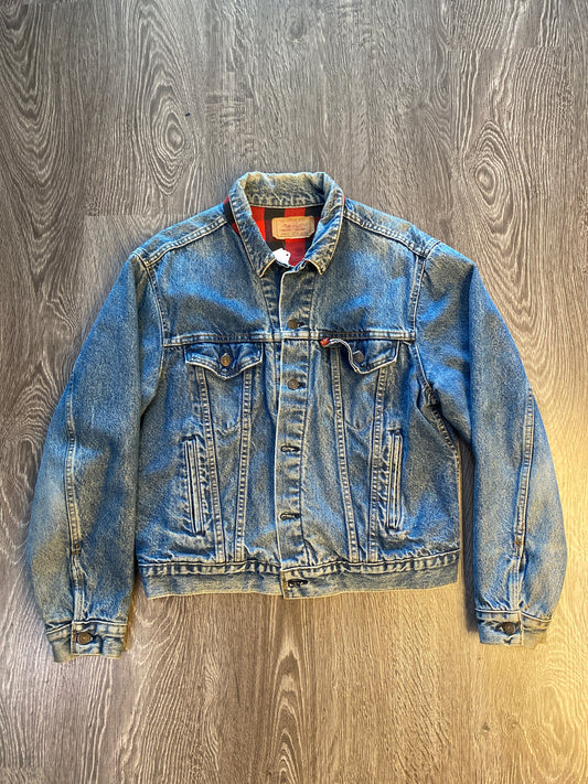 Vintage Y2K Levi’s Denim Trucker Light Wash Lumberjack Red Interior Sz 44 Medium
