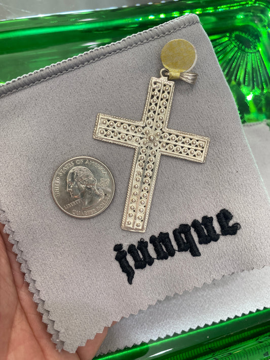.925 Sterling Silver Beaded Large Cross Pendant