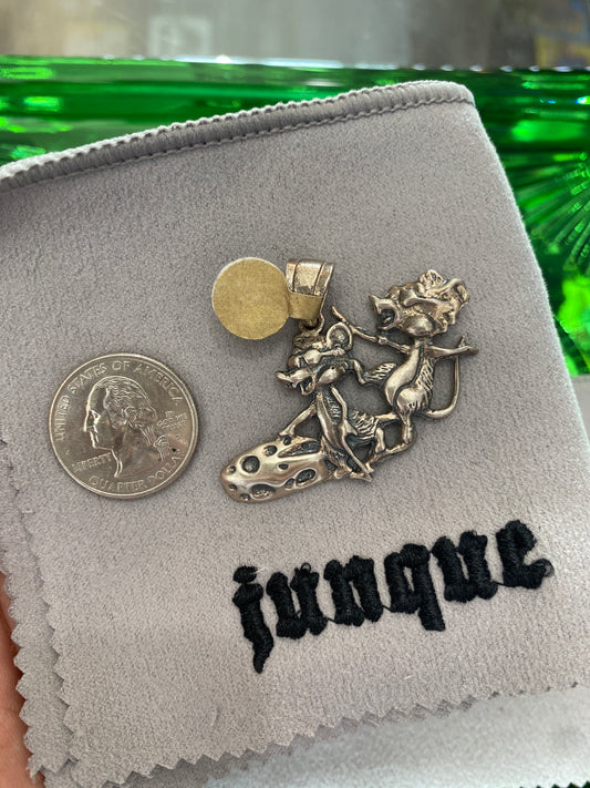 .925 Sterling Silver Rat Mice Mouse Riding Cheese Pendant