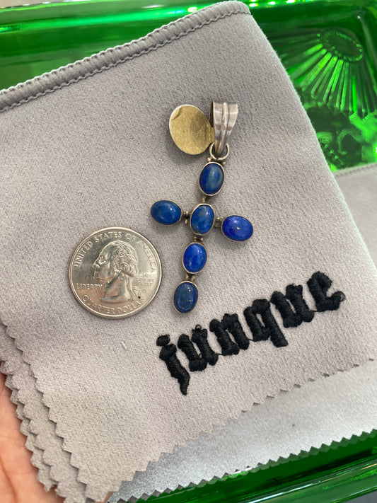 .925 Sterling Silver Lapis Beaded Cross Pendant