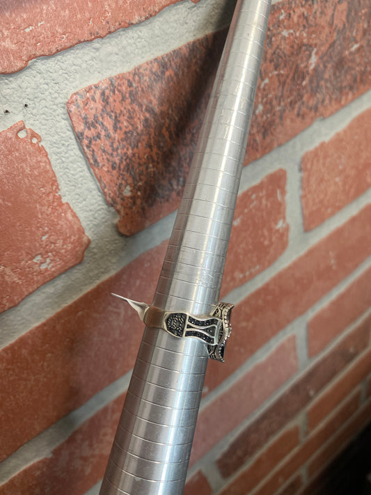 .925 Sterling Silver Onyx Gemstone Studded Ring Sz 11
