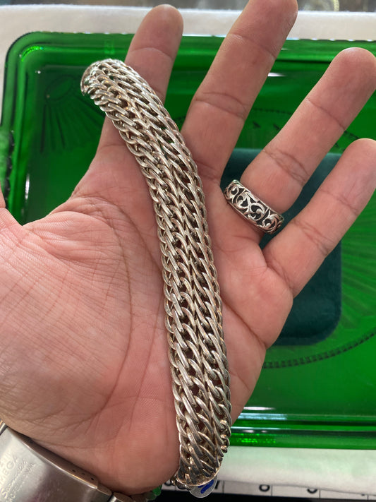 .925 Sterling Silver Chunky Weave Bracelet 8”