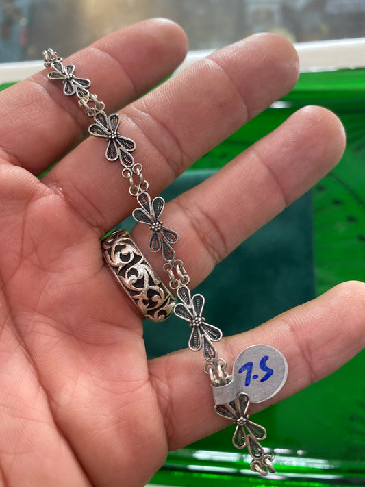 .925 Sterling Silver Flat Floral Style Bracelet 7.5”