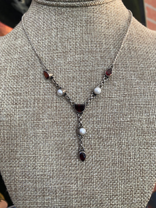 .925 Sterling Silver Garnet Gemstone Necklace Chain