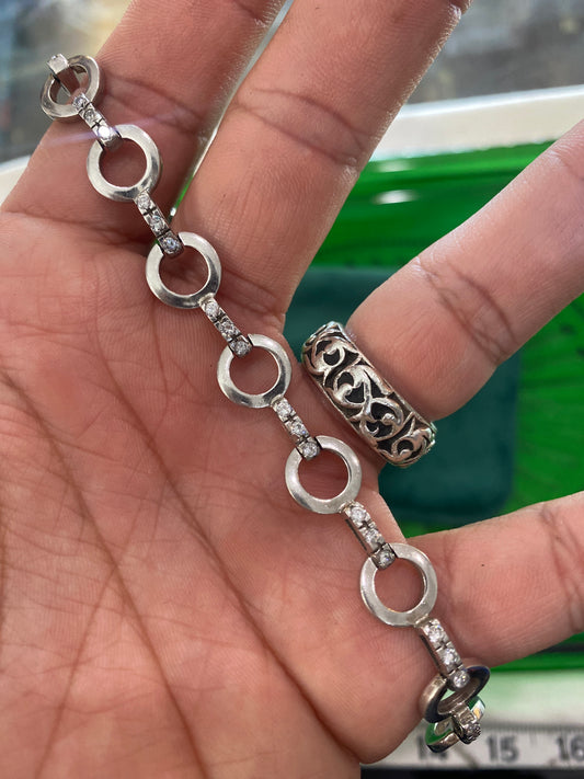 .925 Sterling silver coin edge Bracelet Round 7.5”