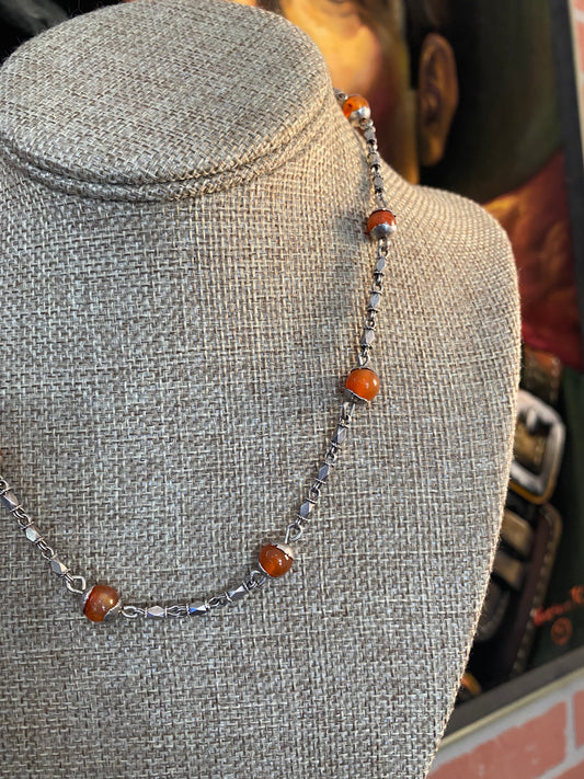 .925 Sterling Silver Beaded Gemstone Chain Necklace 17”