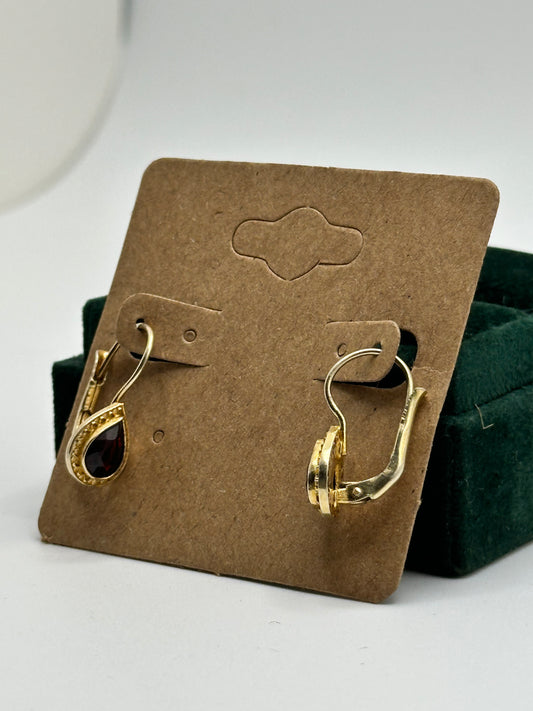.925 Sterling Silver Gold Tone Garnet Teardrop Dangle Earrings