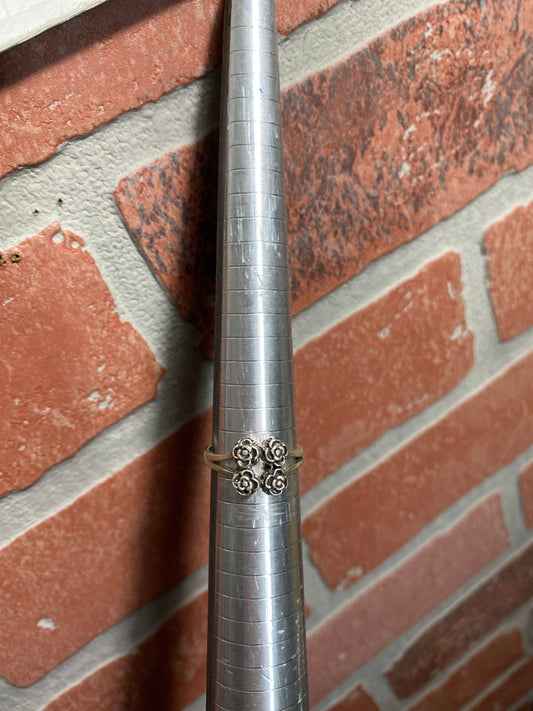 .925 Sterling Silver Four Rose Ring Sz 8.5”