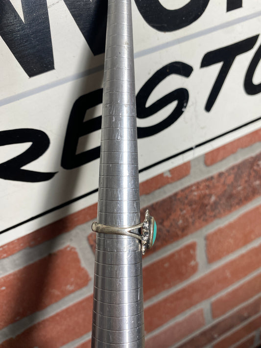 .925 Sterling Silver Turquoise Circle Cocktail Ring Sz 5.5”