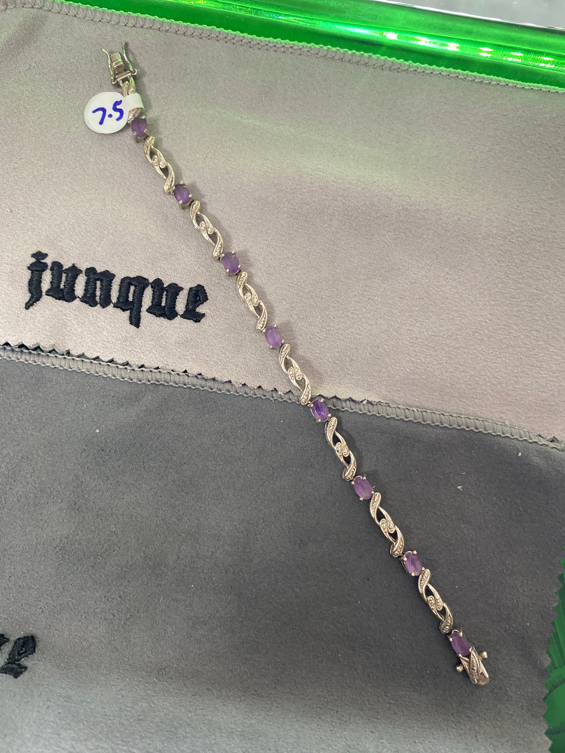 .925 Sterling Silver Amethyst Twisted Bracelet Sz 7.5”