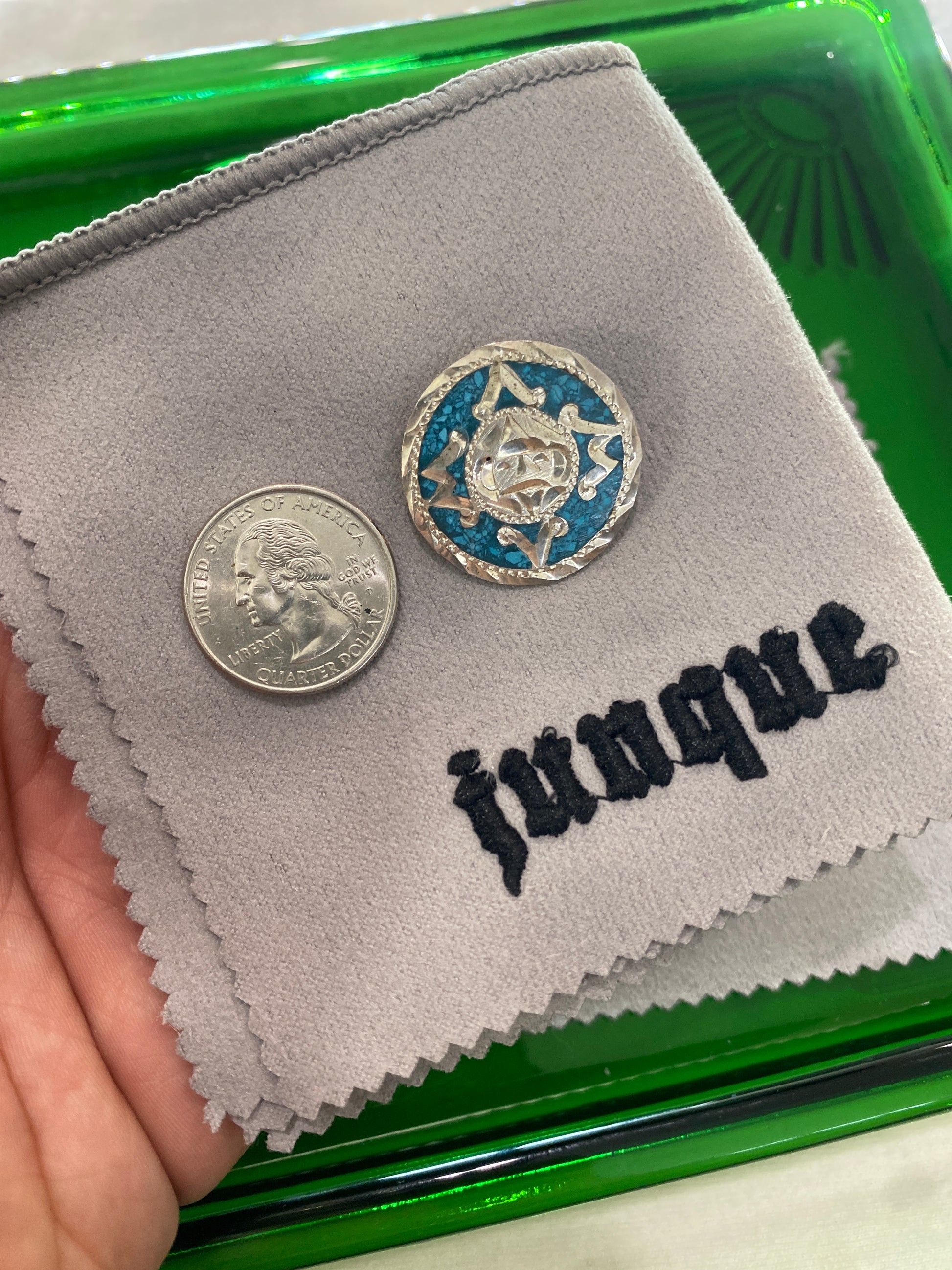 .925 Sterling Silver Aztec Mayan Turquoise Pendant