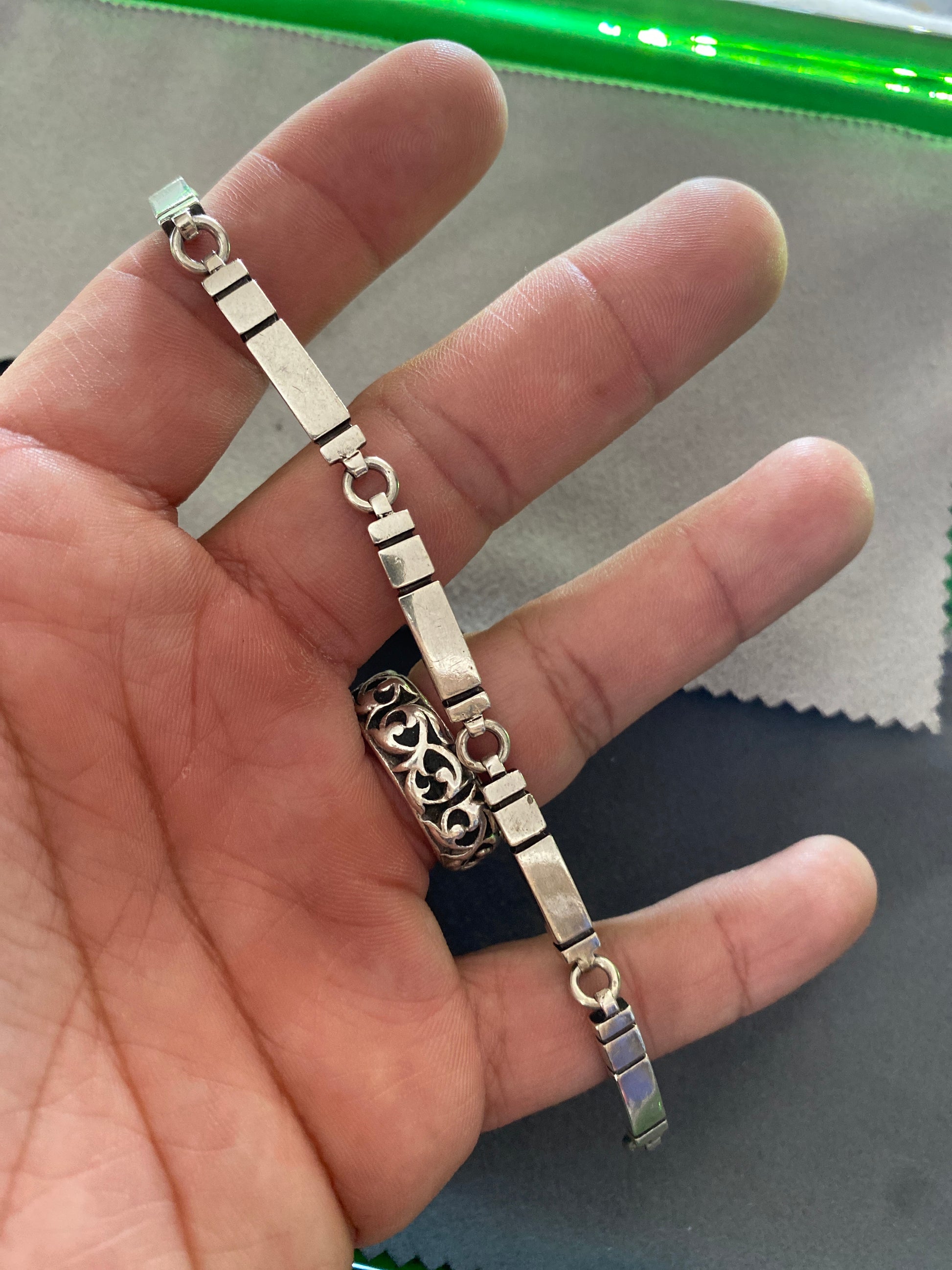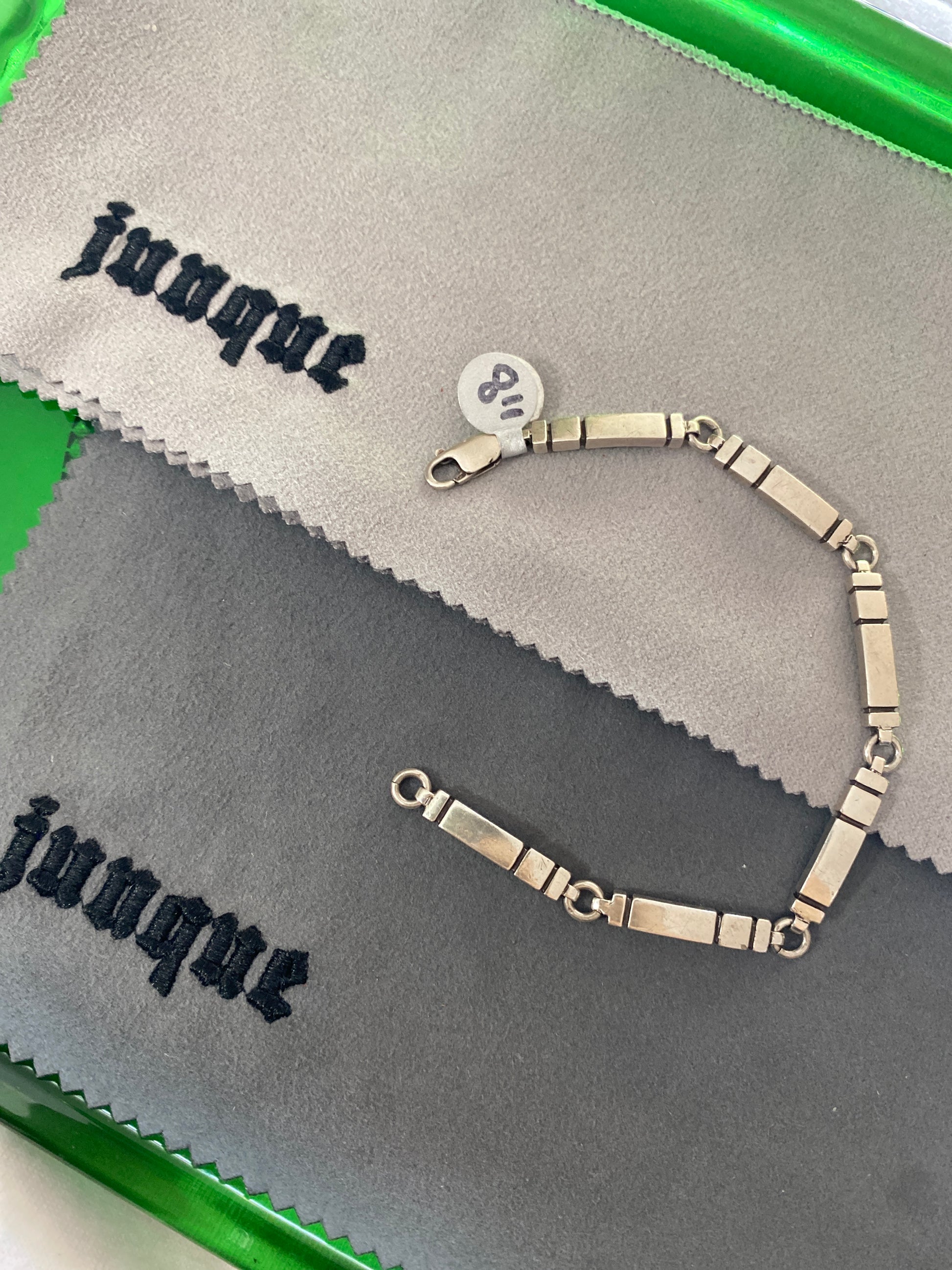 .925 Sterling Silver Block Blocked Link Bracelet Sz 8”