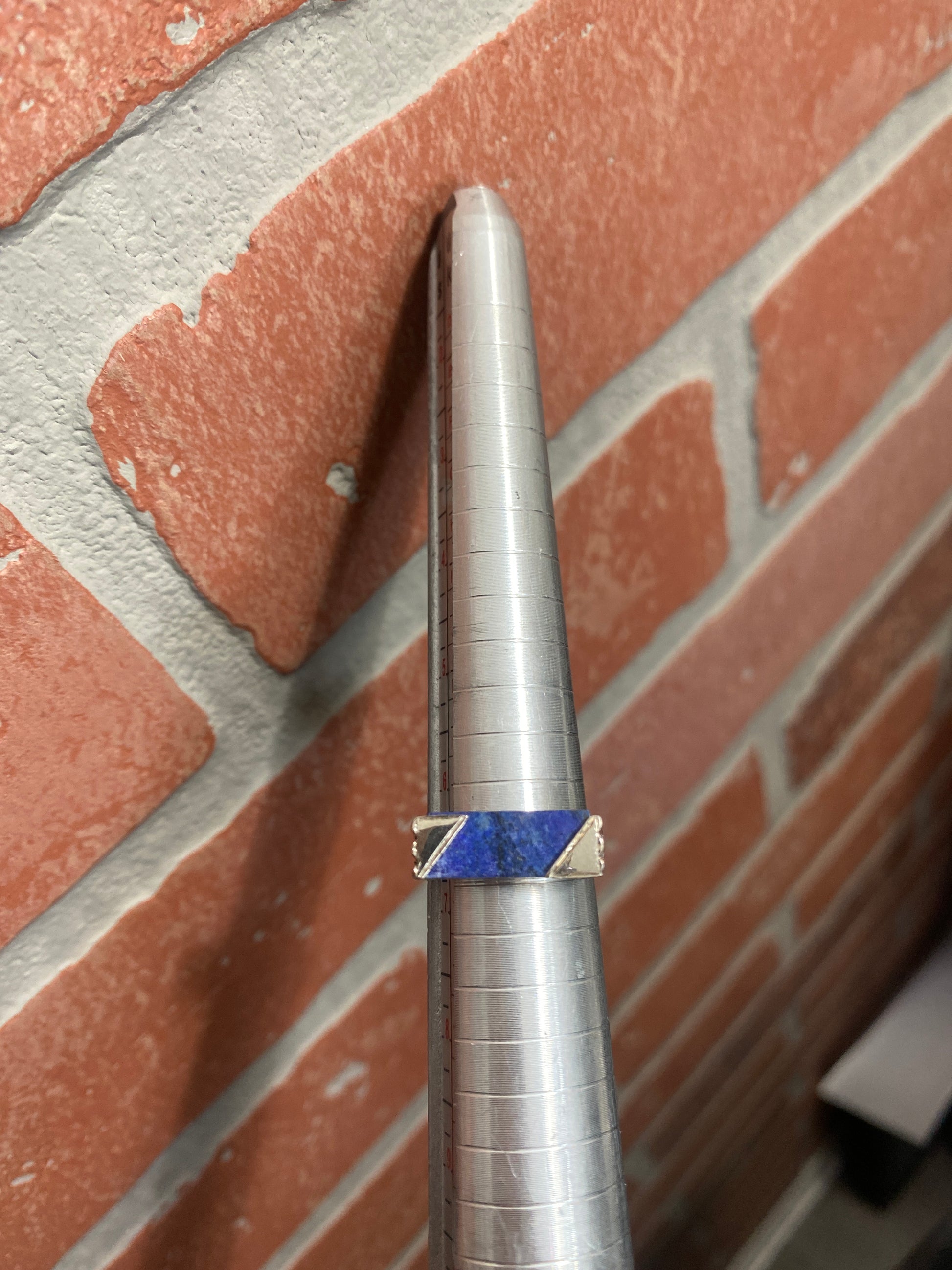 .925 Sterling Silver Blue Gemstone Bar Ring Sz 6.5