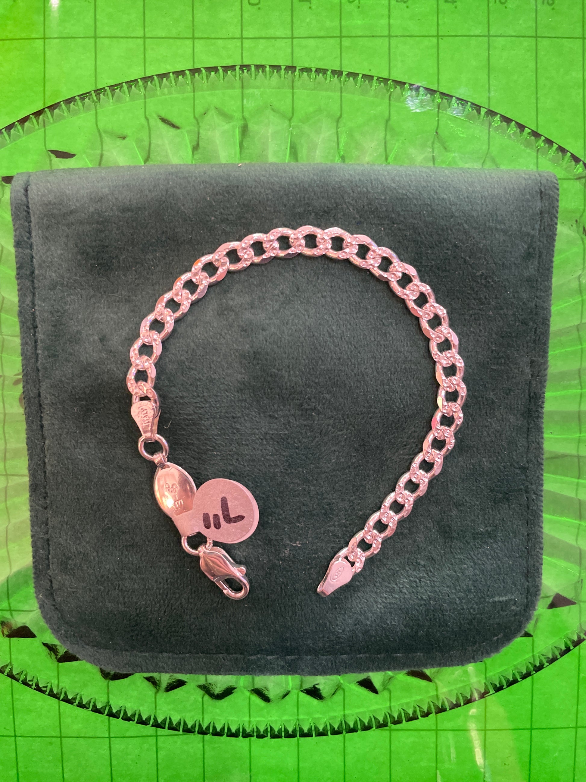 .925 sterling silver cuban diamond cut bracelet 7”