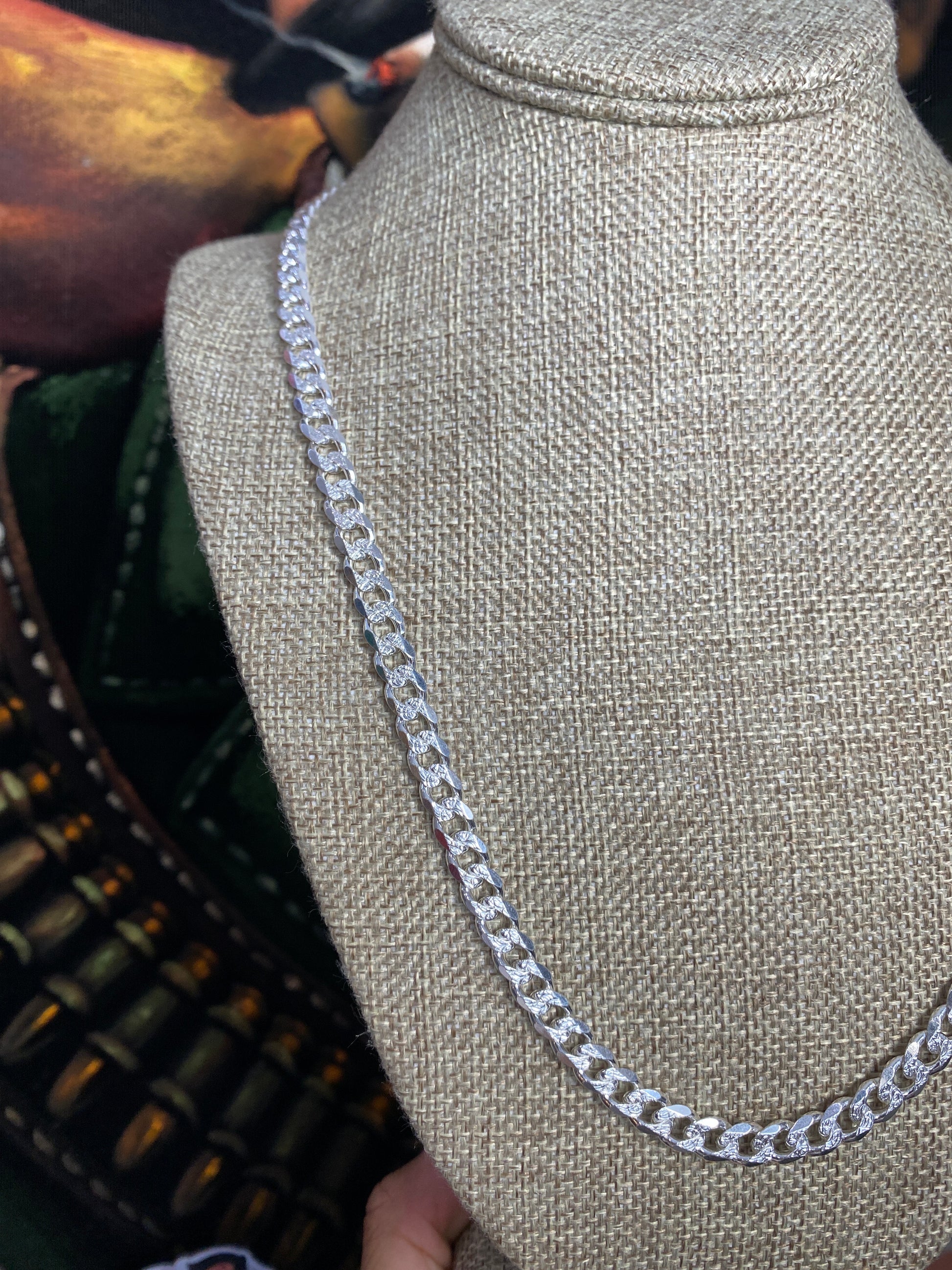 .925 Sterling Silver Diamond Cut Solid Curb Cuban Link Chain 24”