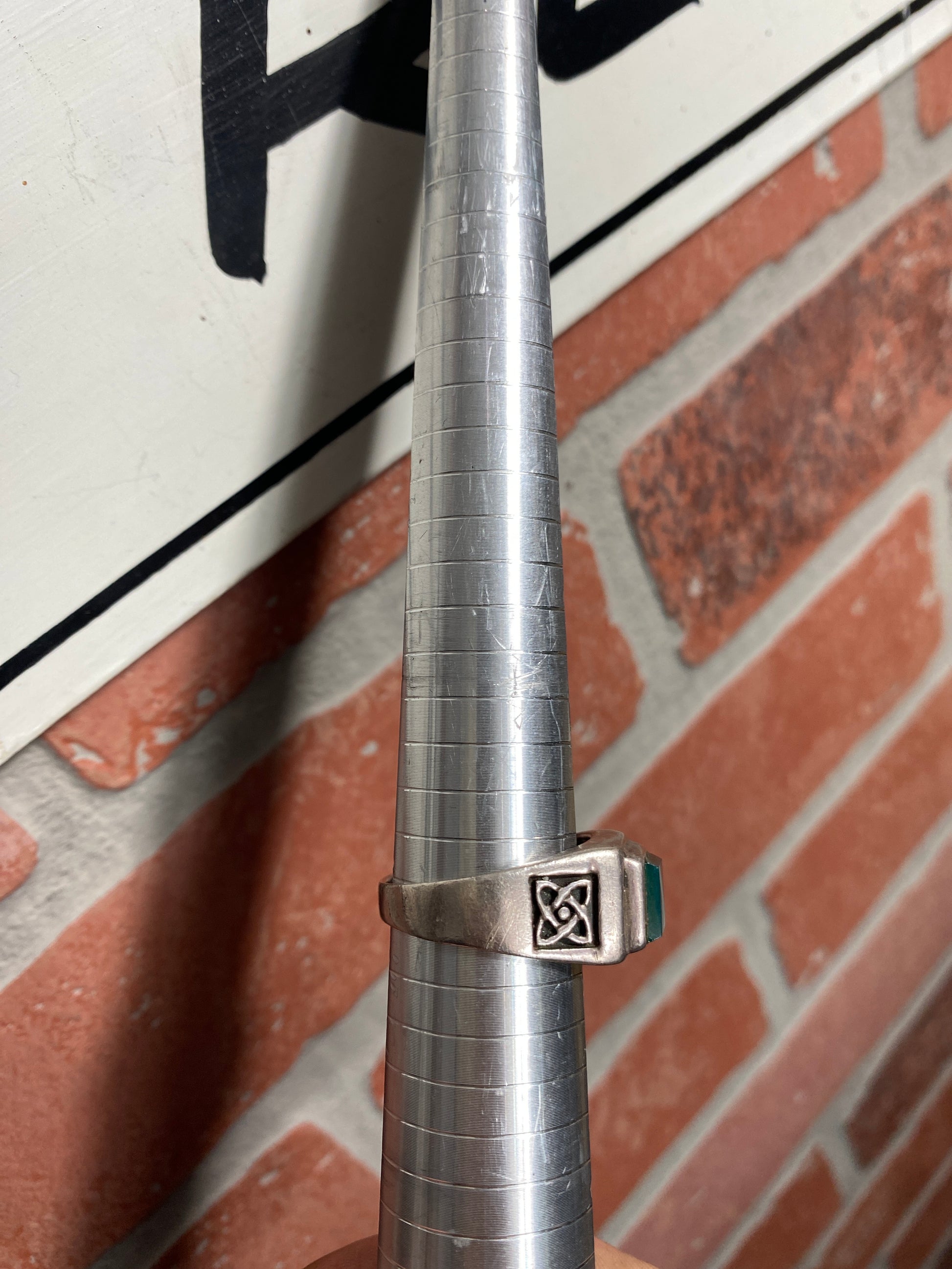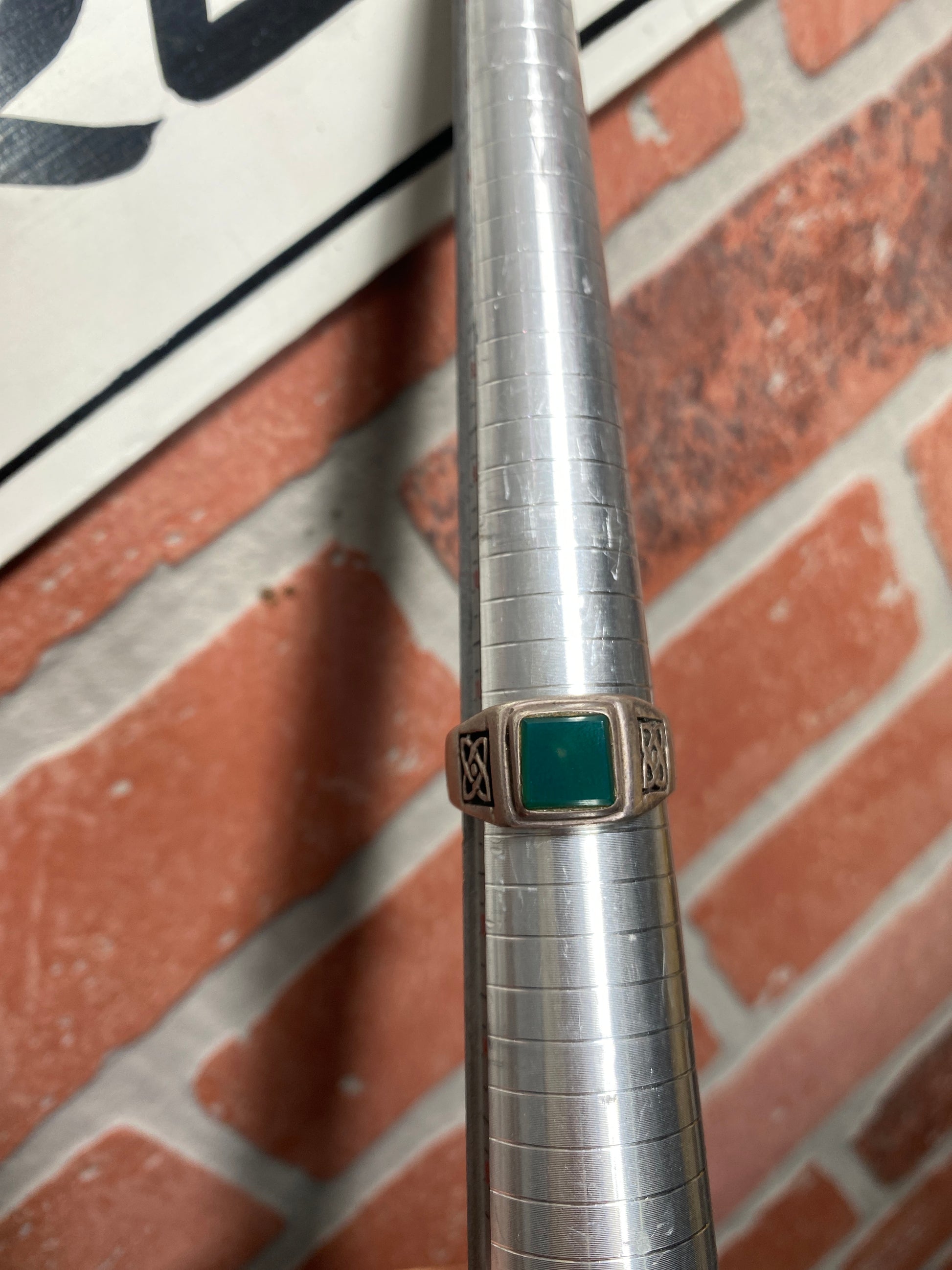 .925 Sterling Silver Emerald Green Square Ring Sz 11.5”