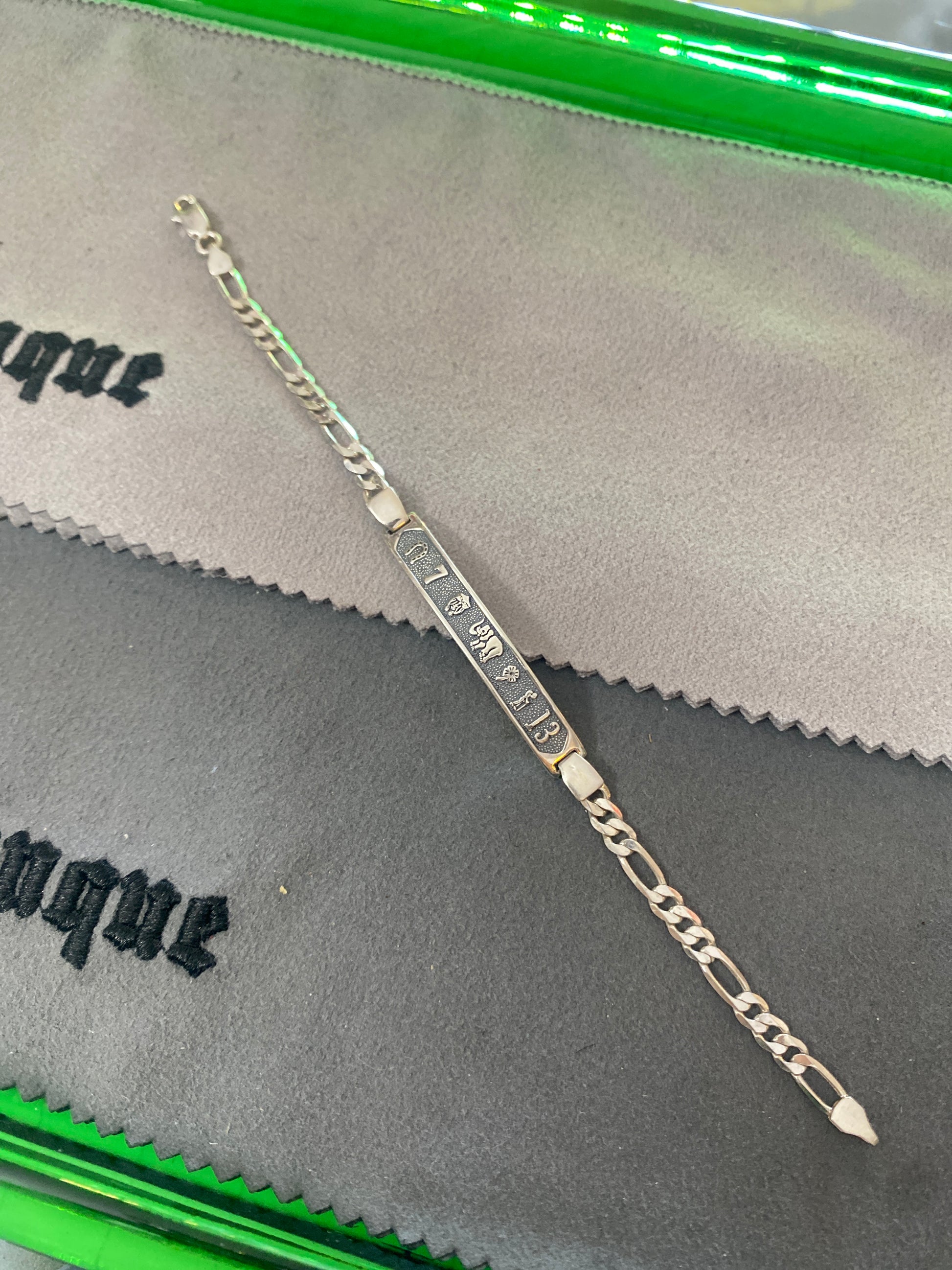 .925 Sterling Silver Figaro Lucky Charm ID Bracelet Sz 6.5”