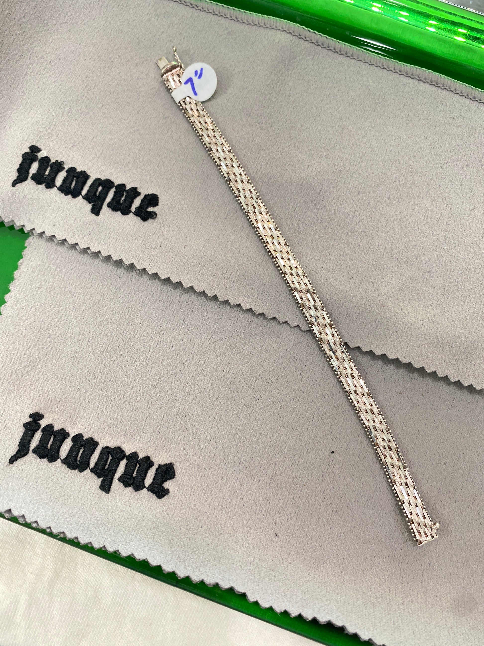 .925 Sterling Silver Flat Diamond Cut Bracelet Sz 7”