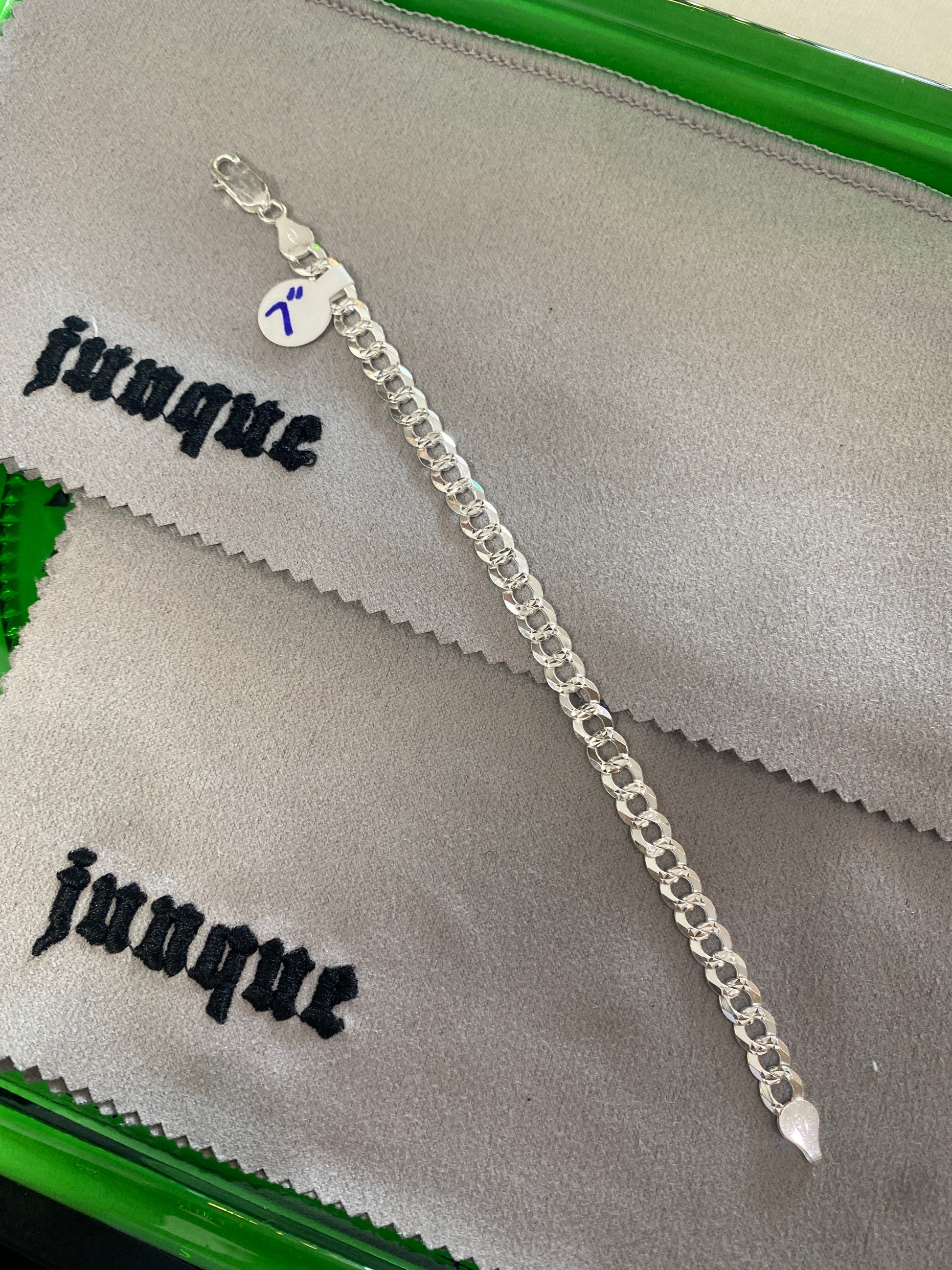.925 Sterling Silver Flat Diamond Cut Cuban Link Bracelet Sz 7”