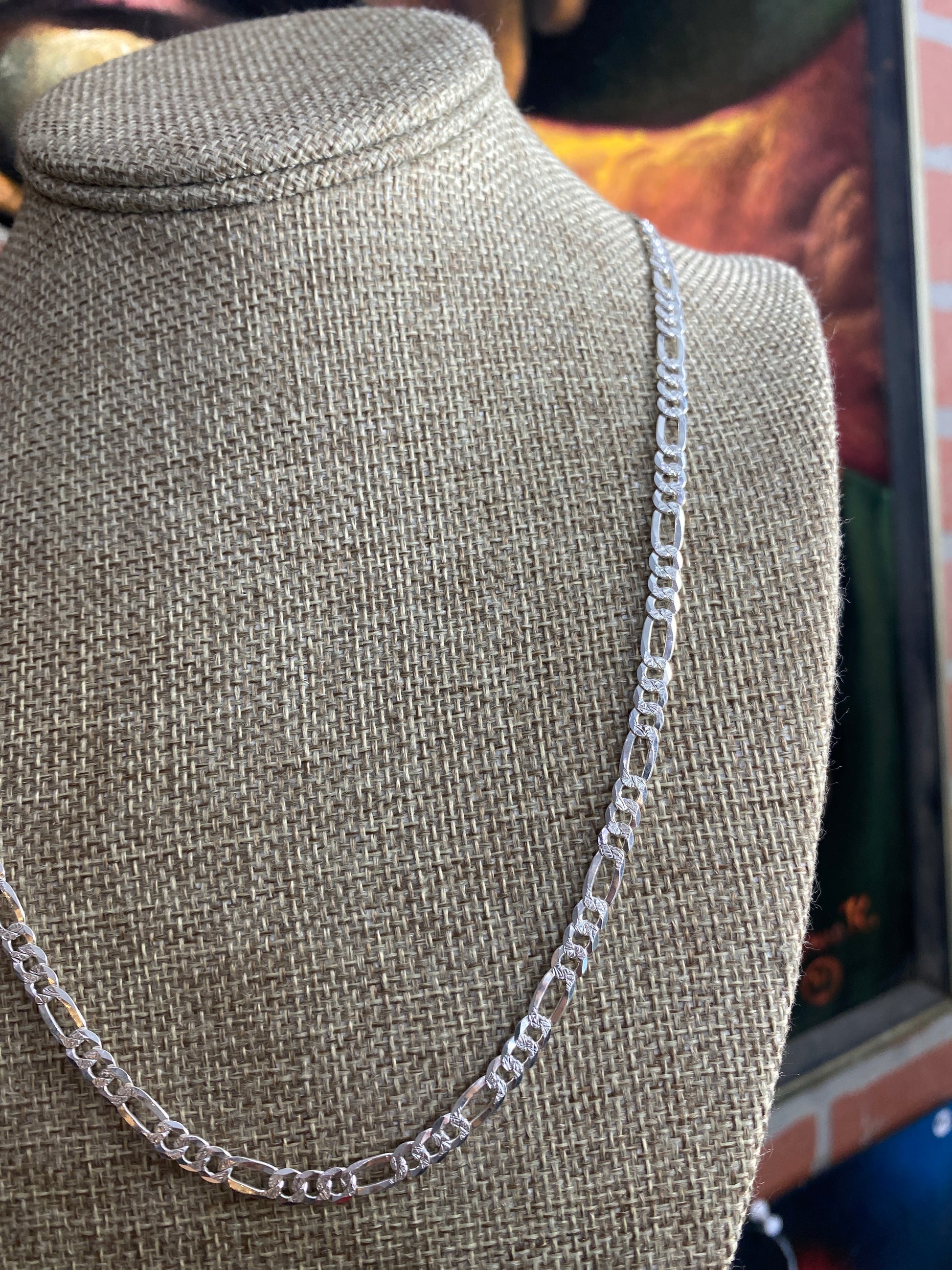 .925 Sterling Silver Flat Figaro Link Chain 24”