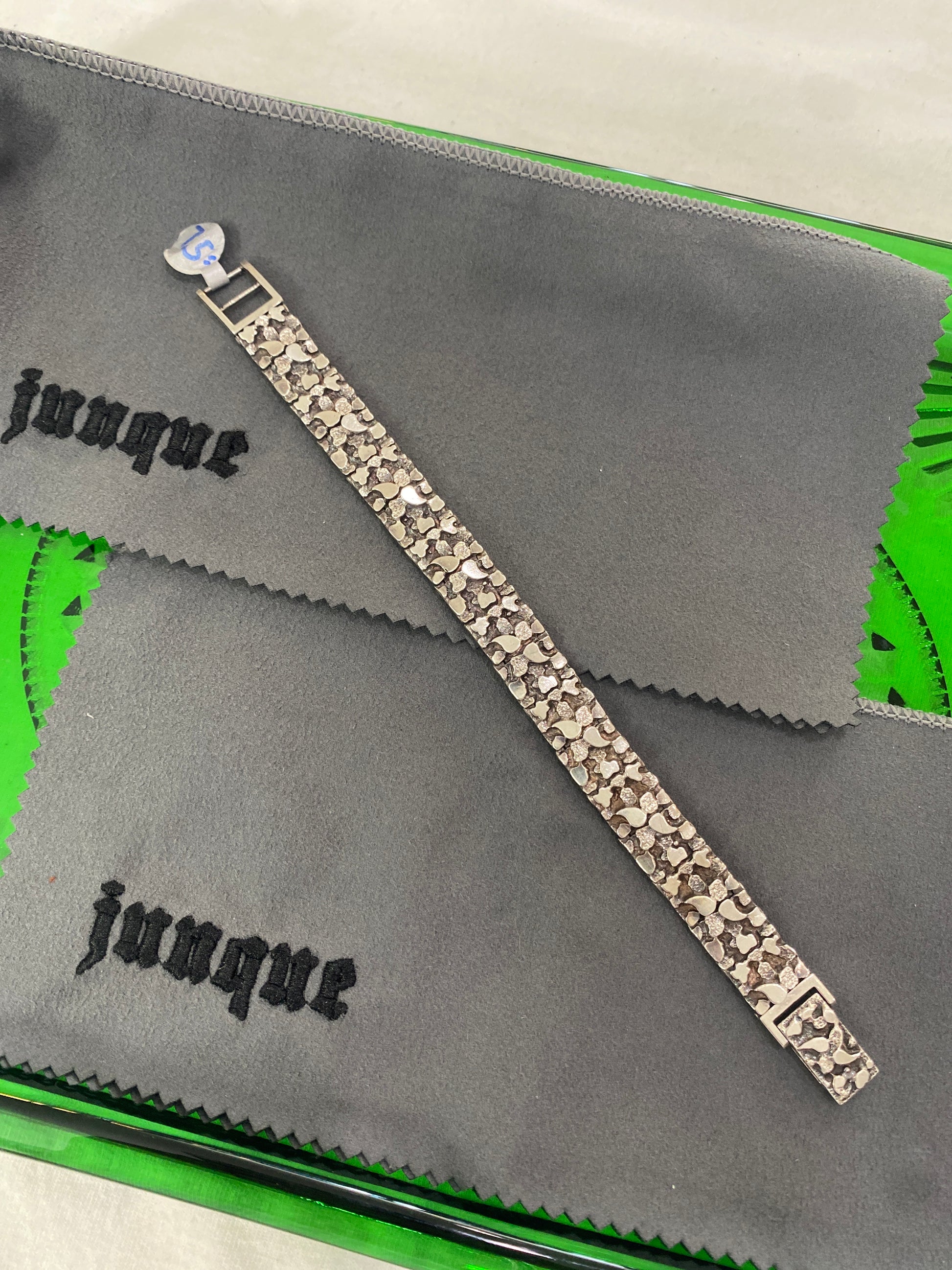 .925 Sterling Silver Flat Nugget Link Bracelet 7.5”