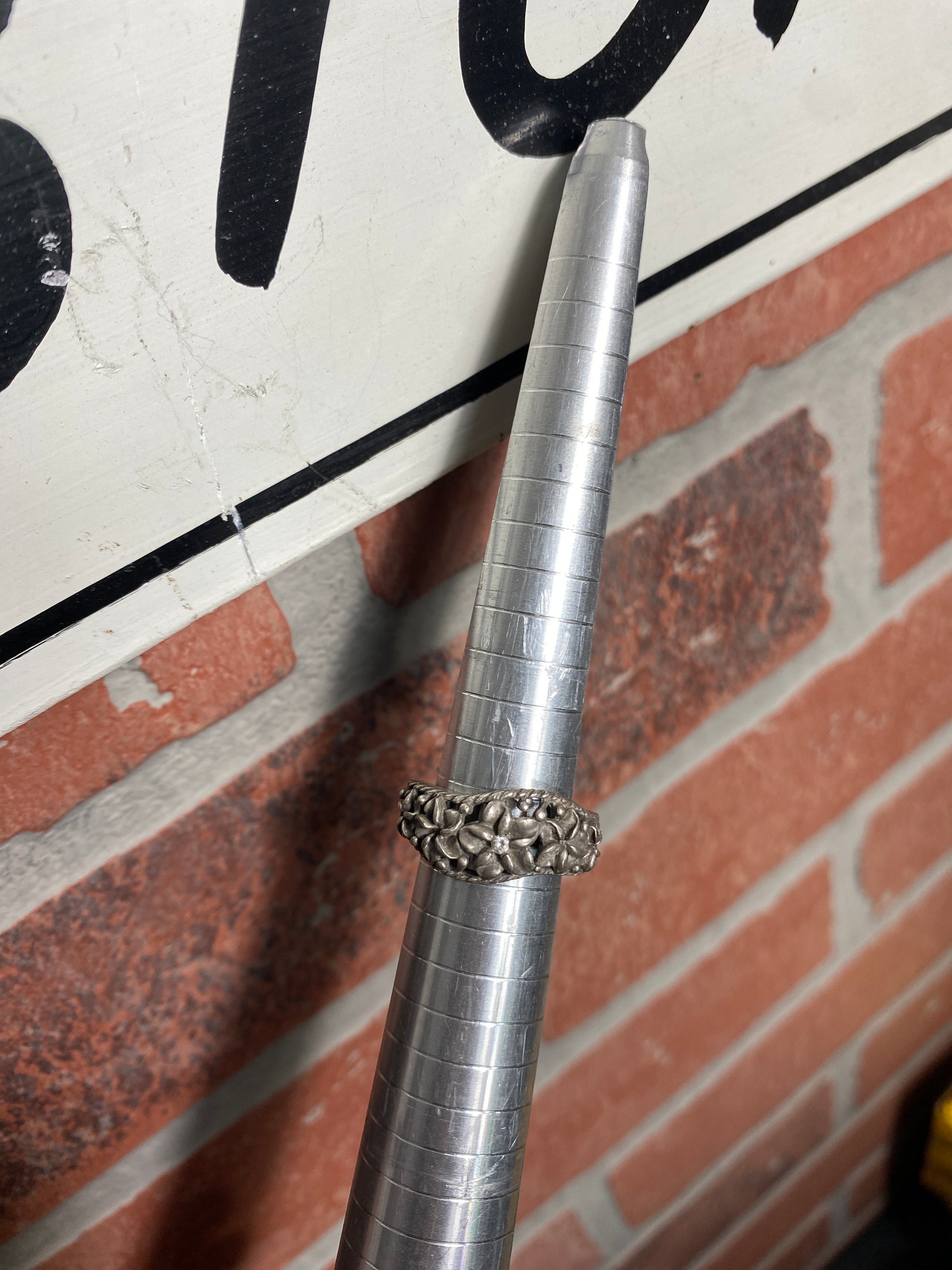 .925 Sterling Silver Floral Flower Ring Sz 7”
