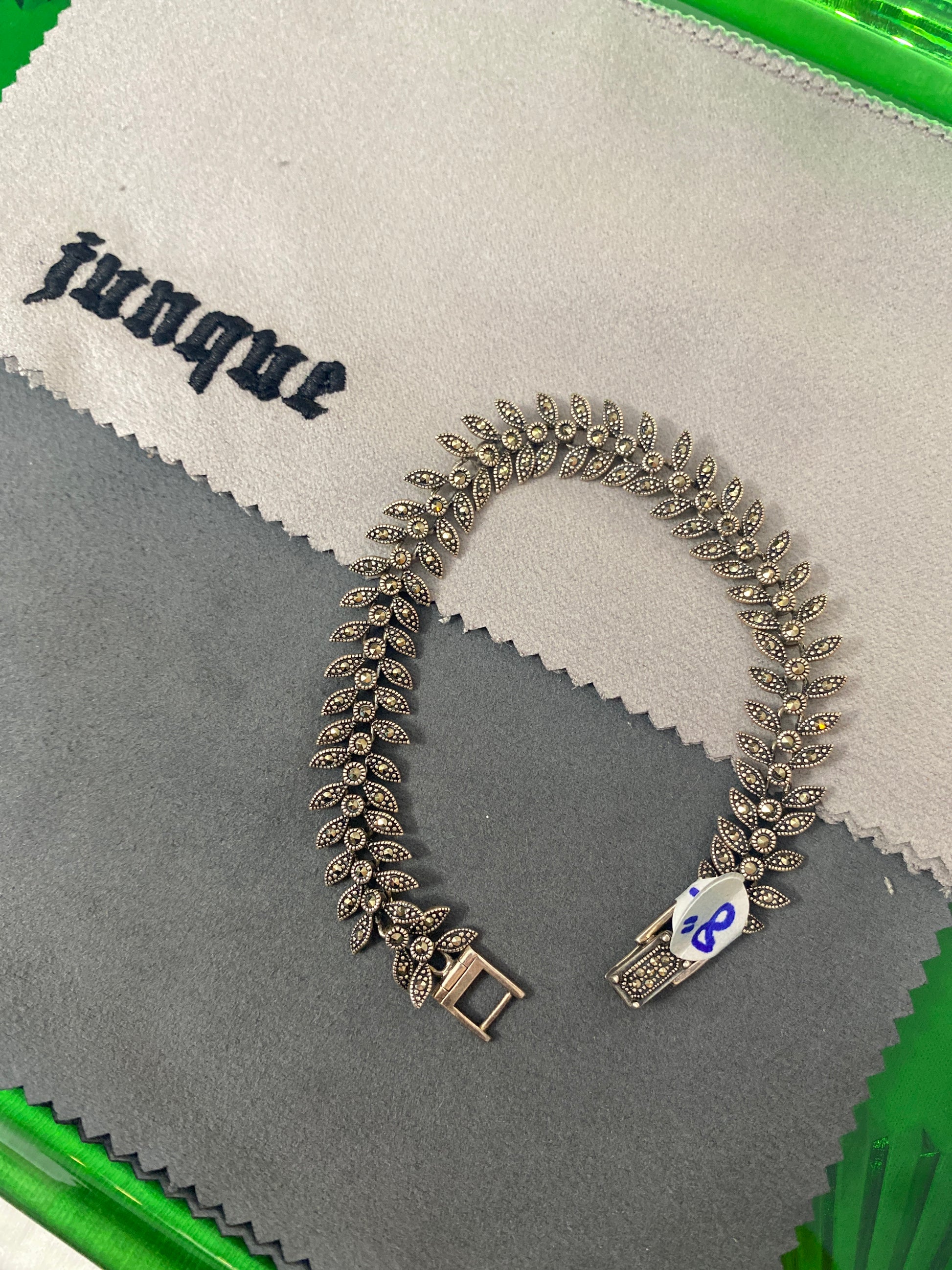 .925 Sterling Silver Floral Weave Onyx Bracelet Sz 8”