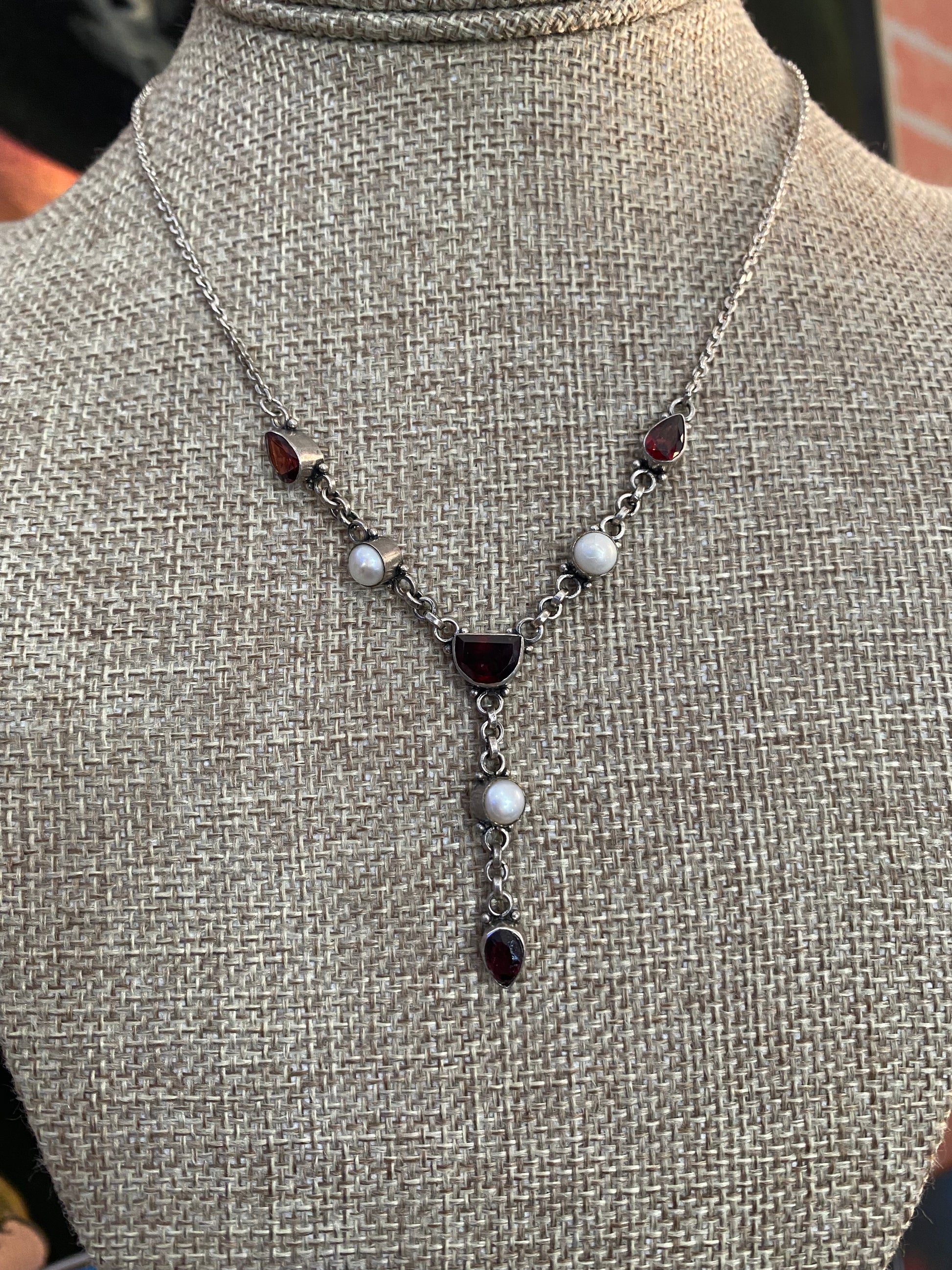 .925 Sterling Silver Garnet Gemstone Necklace Chain