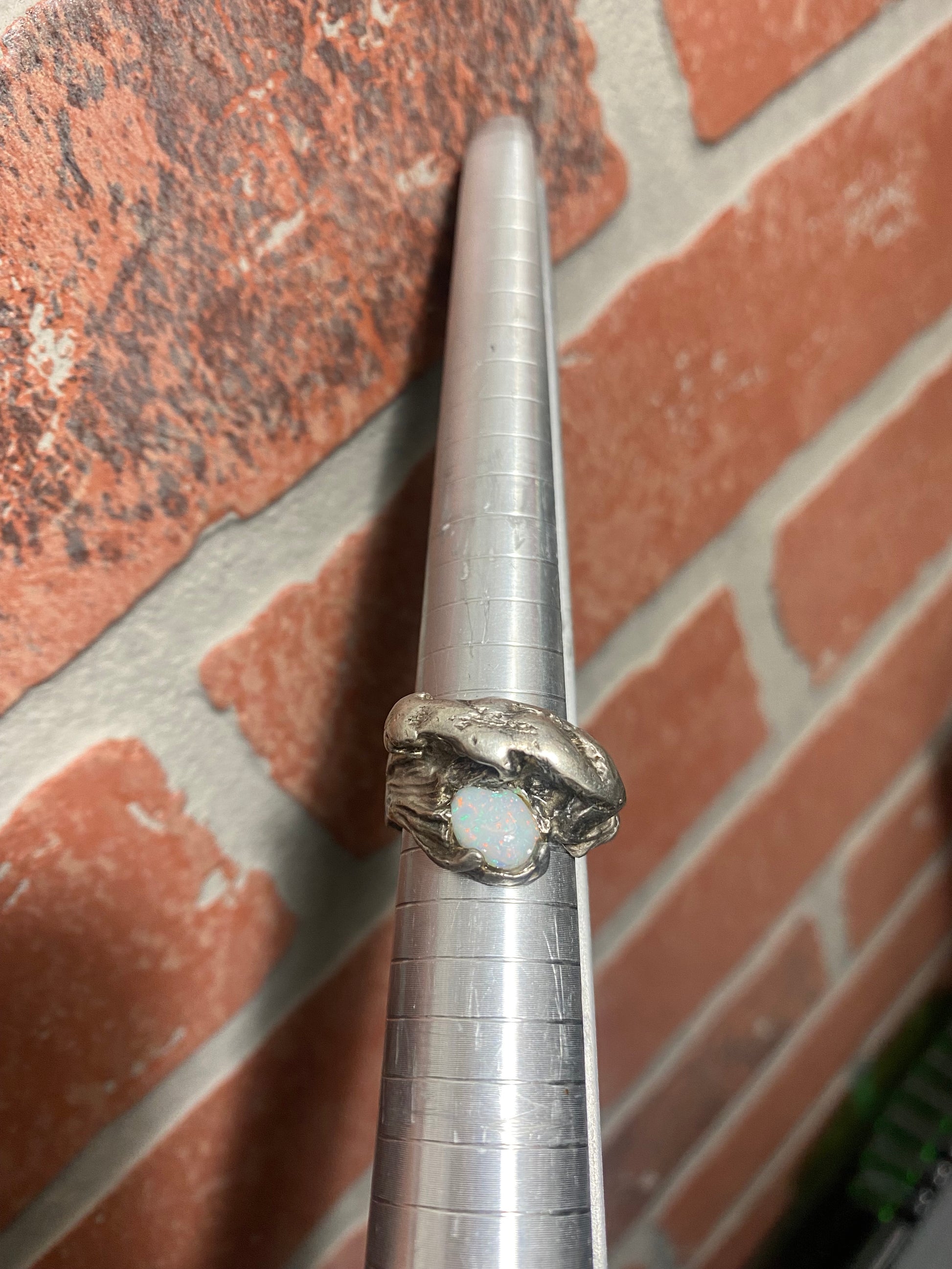 .925 Sterling Silver Jaguar On Opal Ring Sz 8”