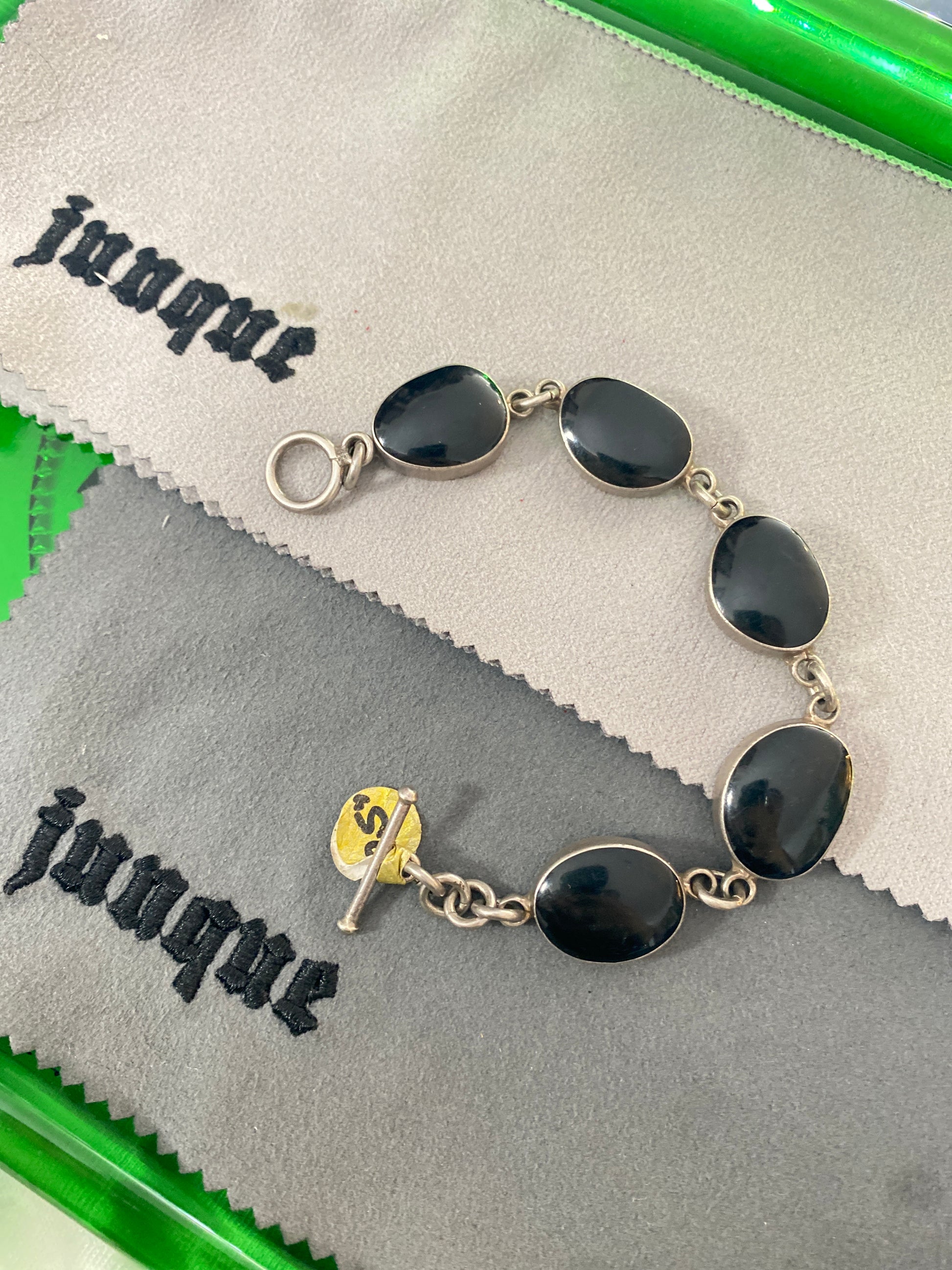 .925 Sterling Silver Large Oval Onyx Bracelet Sz 7.5”