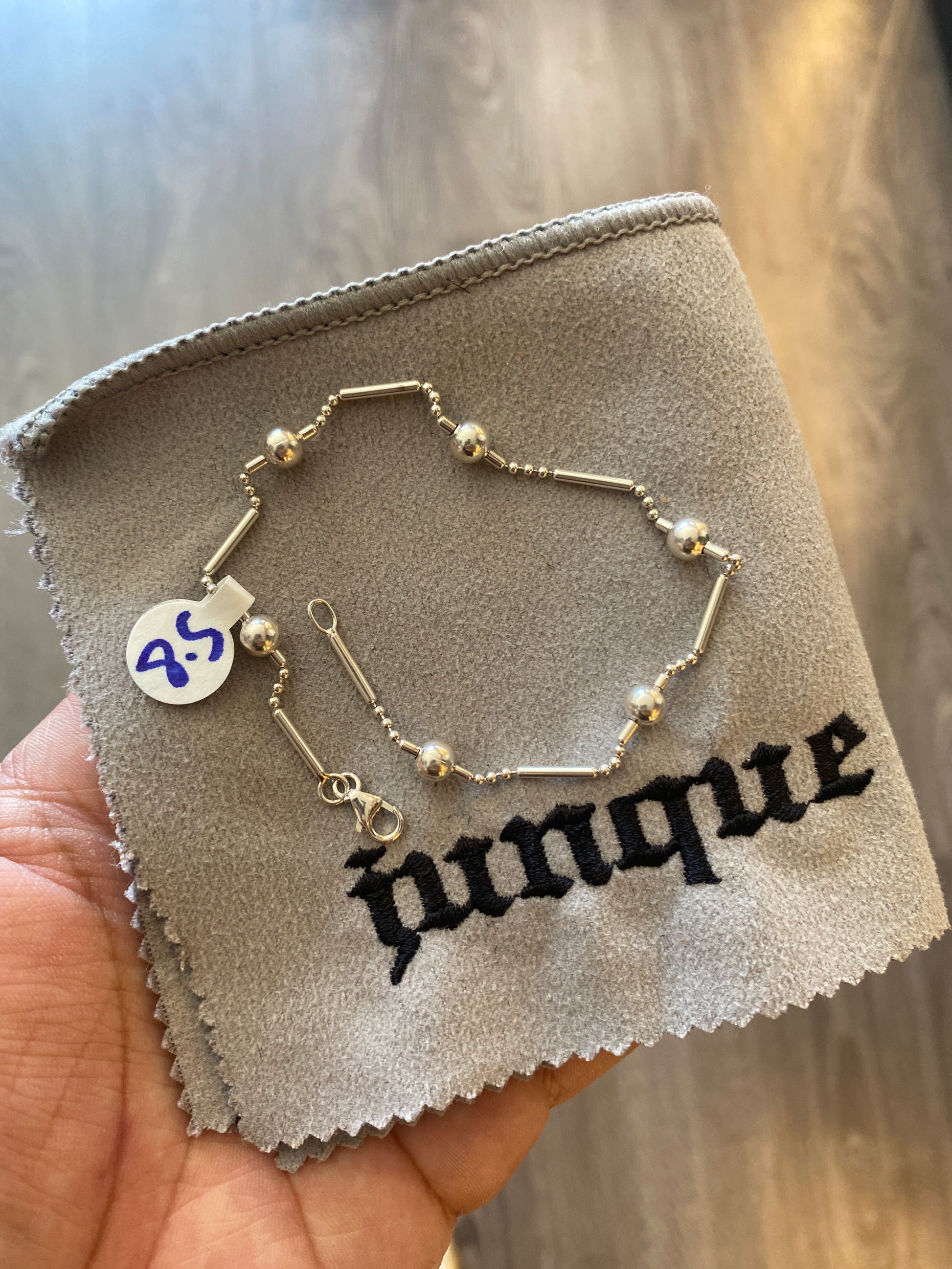 .925 Sterling Silver Mini Beaded Link Bracelet 8.5”
