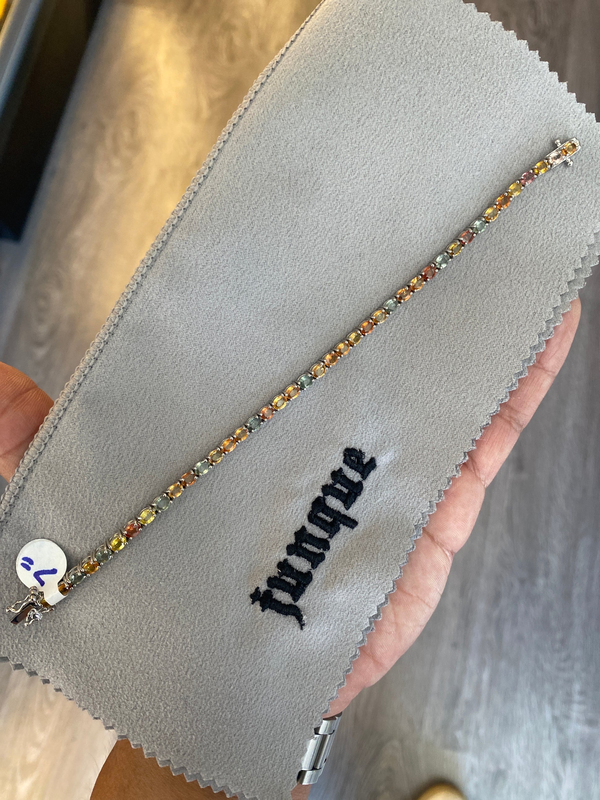 .925 Sterling Silver Multi Gemstone Link Bracelet 7”