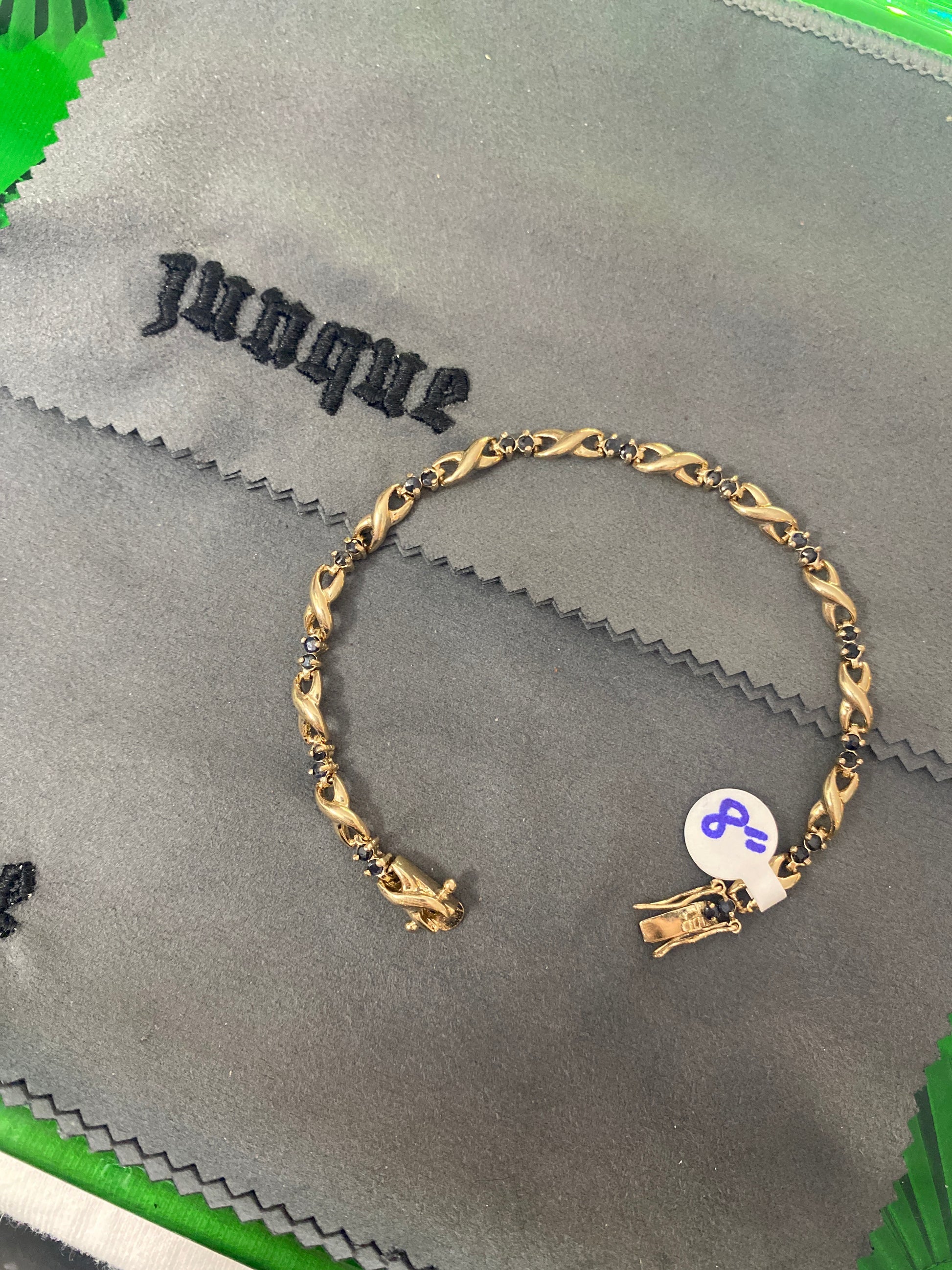 .925 Sterling Silver Gold Tone sapphire Bracelet Sz 8”